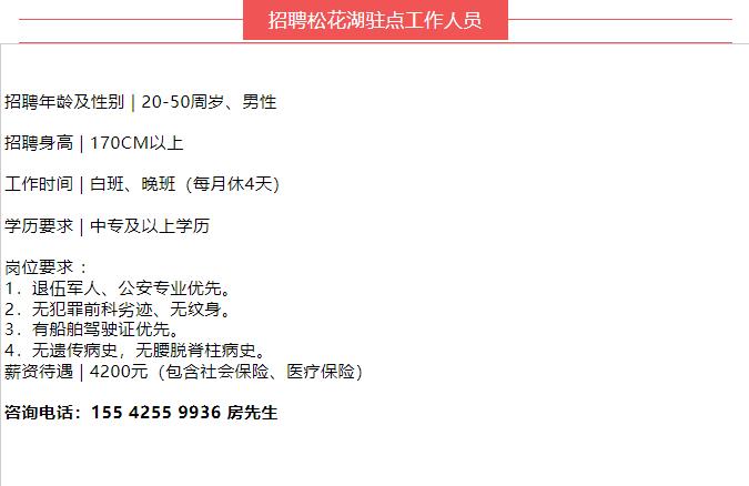 招聘松花湖駐點工作人員