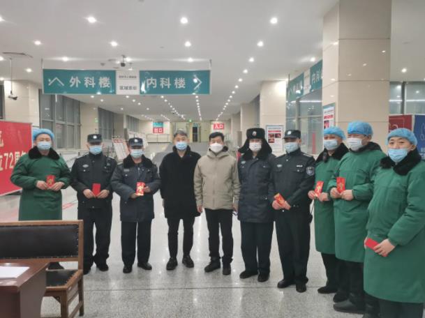 “過年好,大家辛苦了!”在人民醫院大廳,公司黨委書記、董事長馬卓來到值班人員中間,向堅守崗位的廣大保安員們致以節日問候,感謝他們一年來為集團公司和客戶單位付出的辛勞,祝愿他們在新的一年里工作順利、身體健康、家庭幸福。