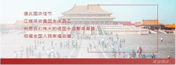 江城保安集團全體員工手持國旗,飽含深情,祝愿祖國母親生日快樂,祝愿我們的祖國繁榮富強,國泰民安,并表示未來將繼續(xù)腳踏實地,拼搏進取,以實際行動報效祖國。值此國慶佳節(jié),江城保安集團攜手客戶單位,共同慶祝祖國73周年華誕,同時也祝所有員工,國慶節(jié)快樂。